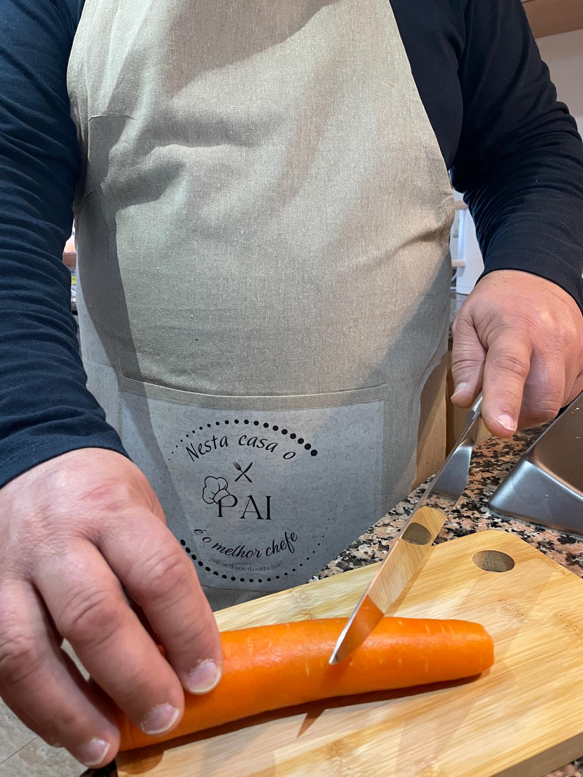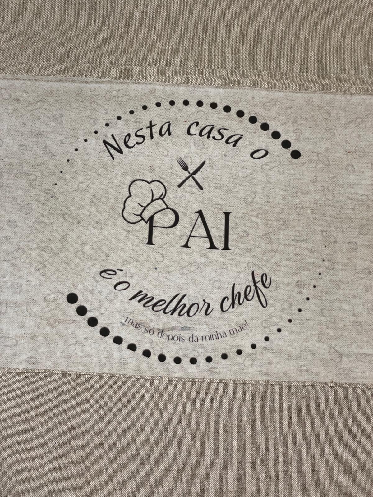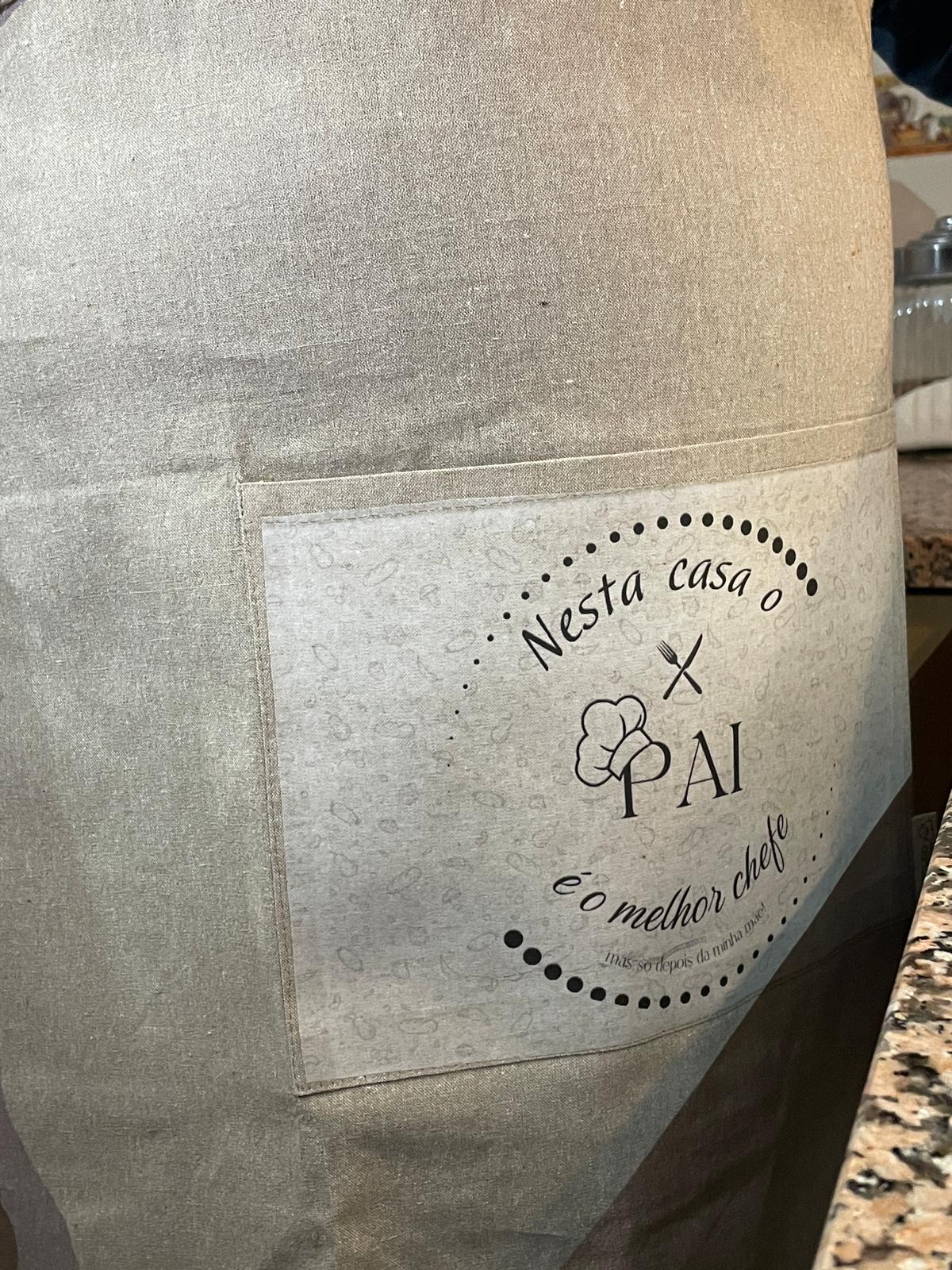 A divertida mensagem "Nesta casa o pai é o melhor chefe... mas só depois da minha mãe" adiciona um toque de humor e carinho ao presente, tornando-o perfeito para pais que amam cozinhar (ou pelo menos tentam!).