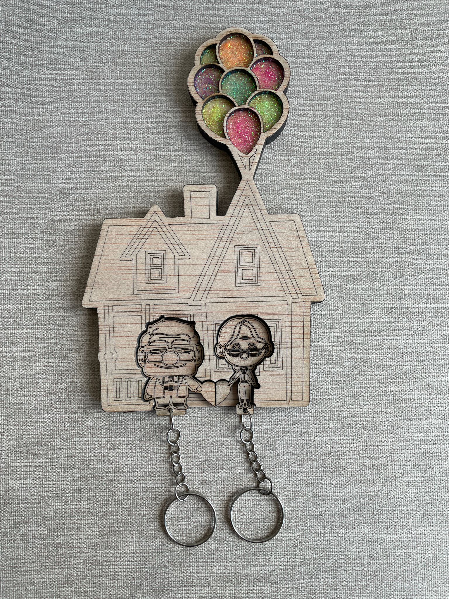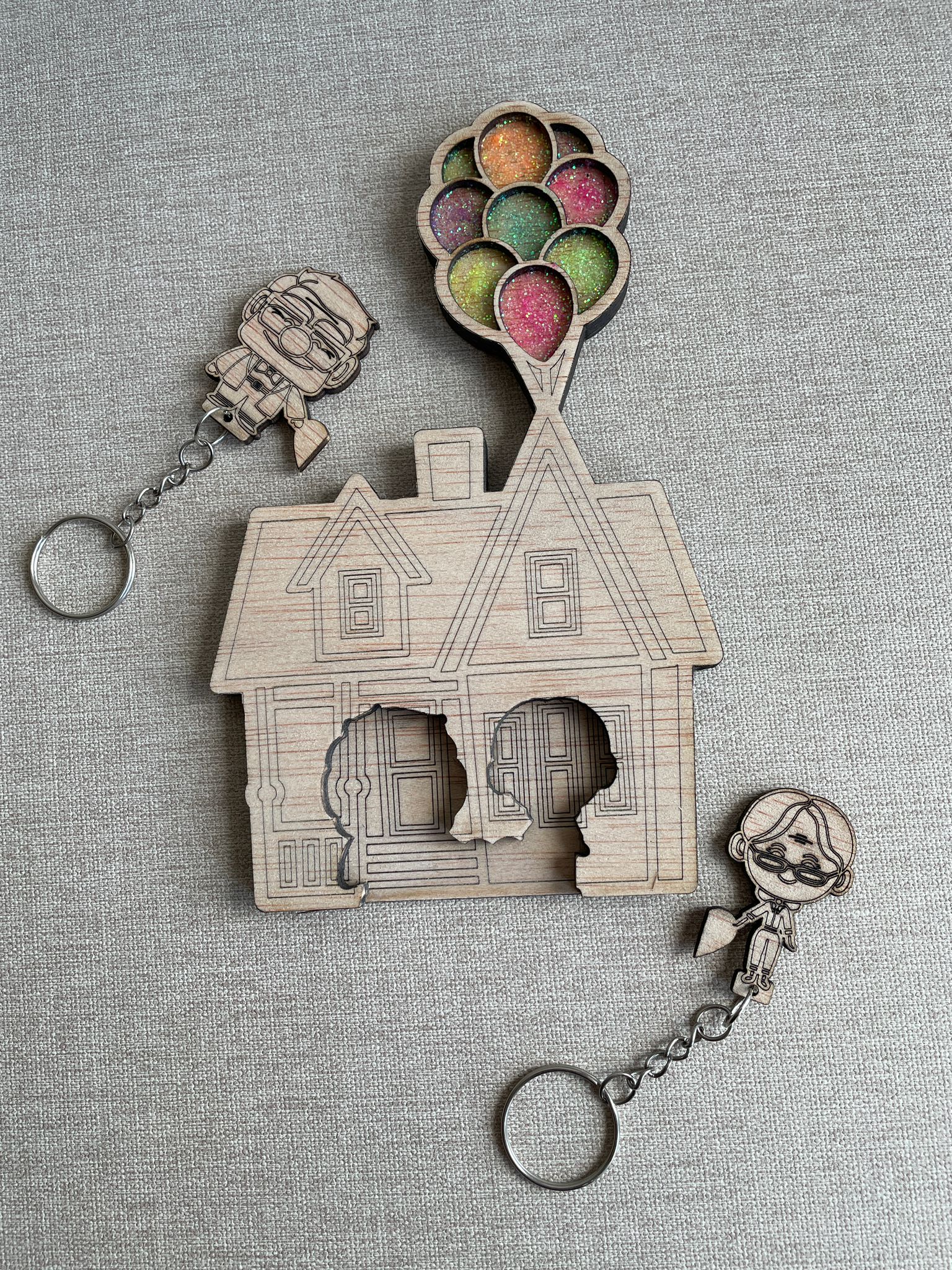 Traga a magia do filme "Up - Altamente" para o seu dia a dia com nosso encantador chaveiro da casa do filme! Este produto exclusivo vem com dois porta-chaves em madeira, representando as adoráveis personagens que moram na casa. Este chaveiro não é apenas uma maneira prática de manter suas chaves organizadas, mas também um tributo ao amor e à aventura. É o presente perfeito para fãs de todas as idades, adicionando um toque de nostalgia e alegria a qualquer conjunto de chaves. Leve a casa de "Up - Altamente" com você e celebre a aventura da vida!