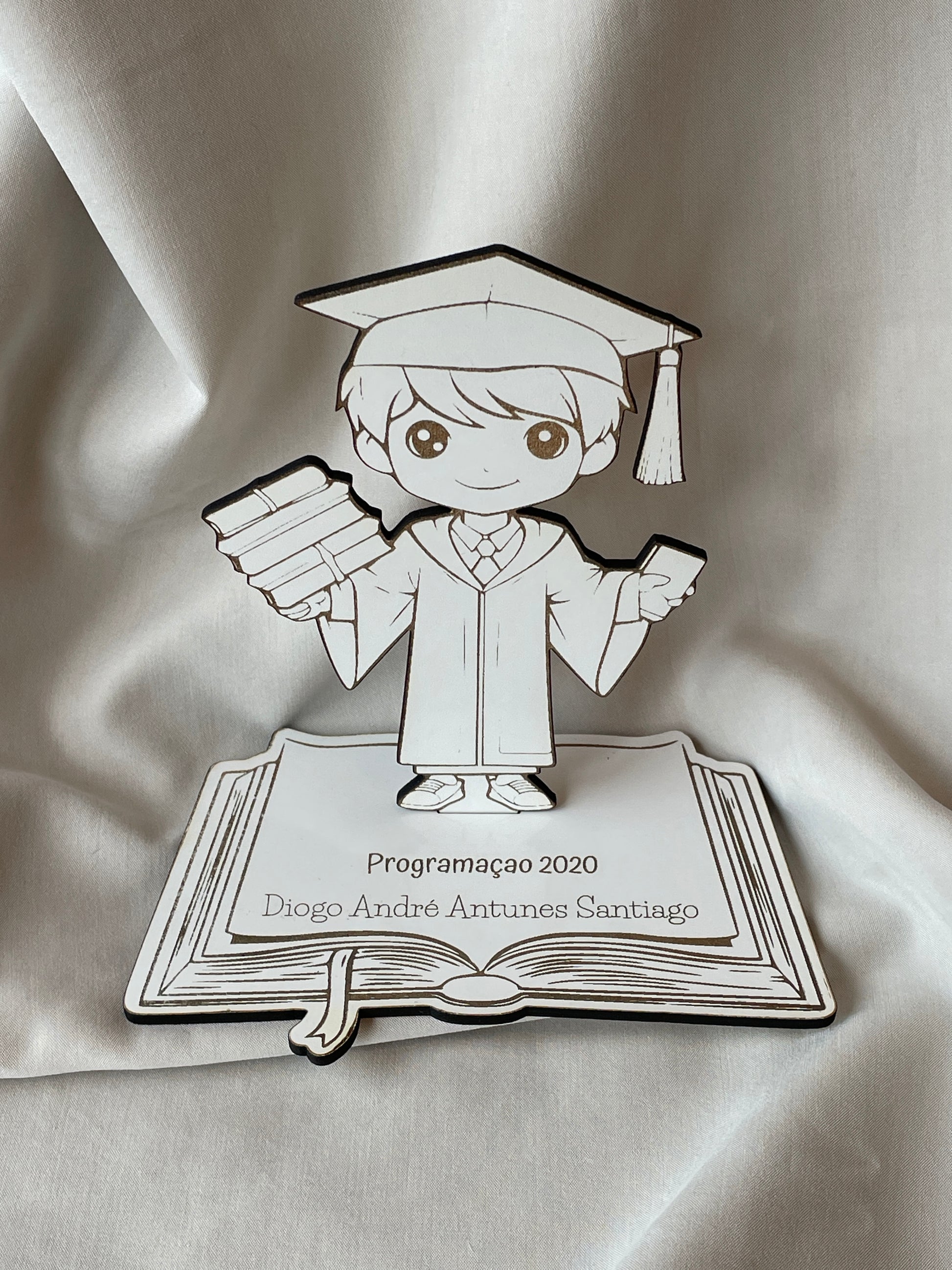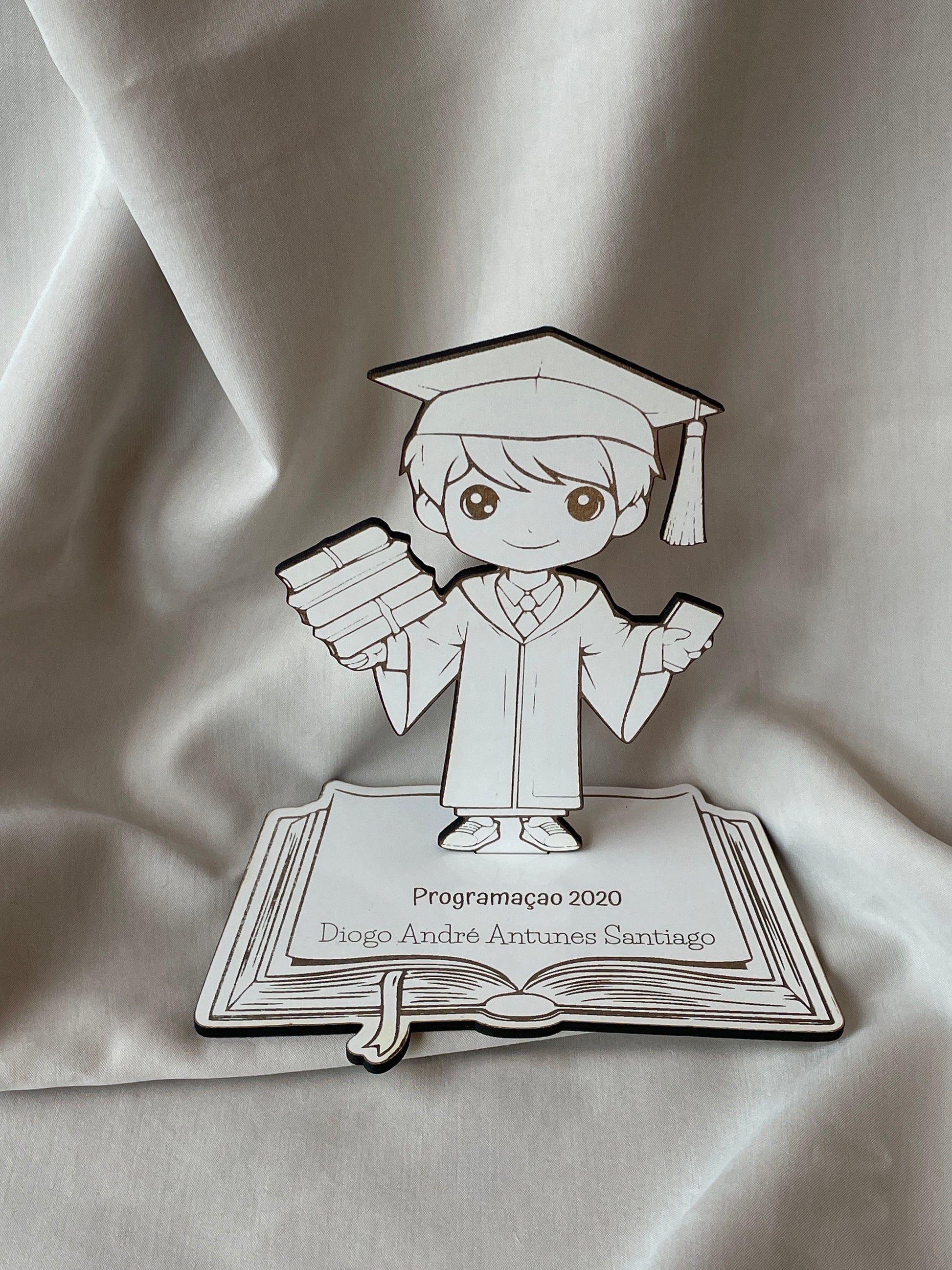 Comemore uma conquista tão importante com nossa lembrança de finalista personalizada! Esta peça única apresenta um aluno em pé sobre uma base em forma de livro, simbolizando o conhecimento e o esforço dedicados aos estudos.