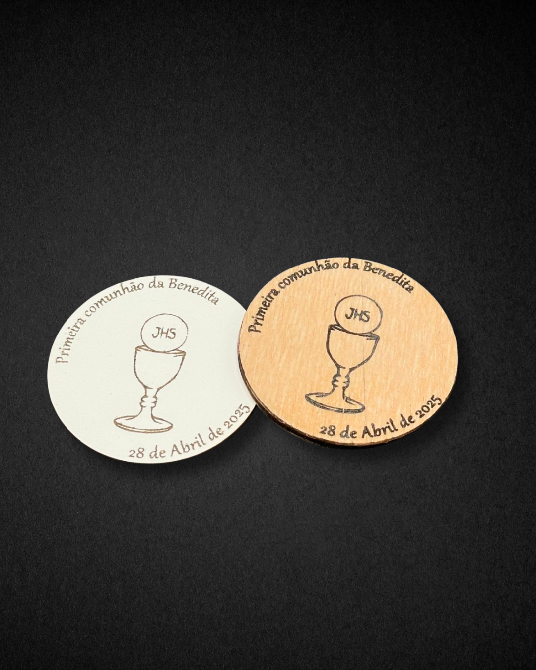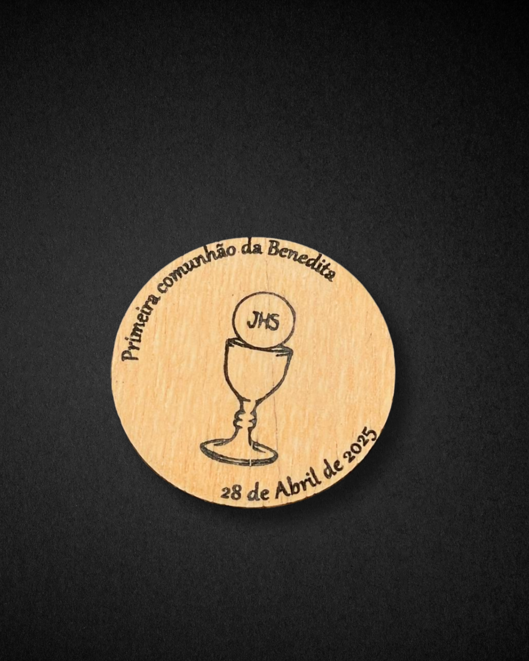 Lembrança redonda com cálice para Batismo/ Comunhão/ Profissão de fé