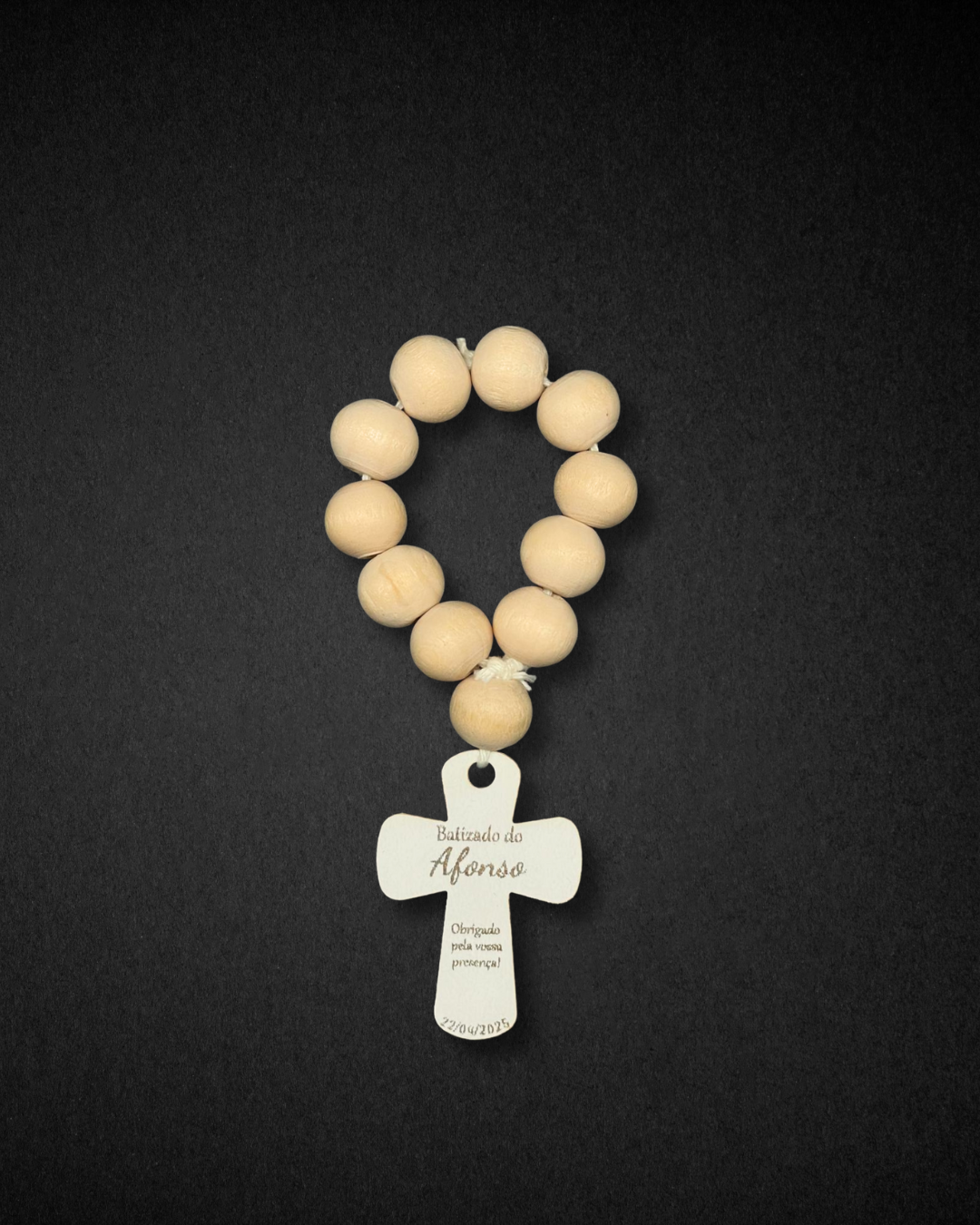 Celebre a Primeira Comunhão com uma lembrança única e cheia de espiritualidade. Este terço artesanal é composto por 11 bolinhas de madeira natural e uma cruz no final, representando a conexão com a fé e a importância desse sacramento sagrado.
