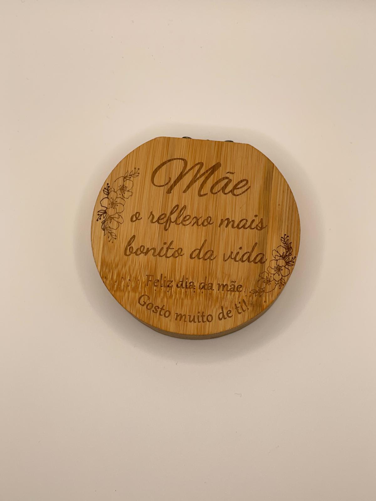 Porta-jóias com espelho com mensagem dia da mãe “Mãe, o reflexo mais bonito da vida”