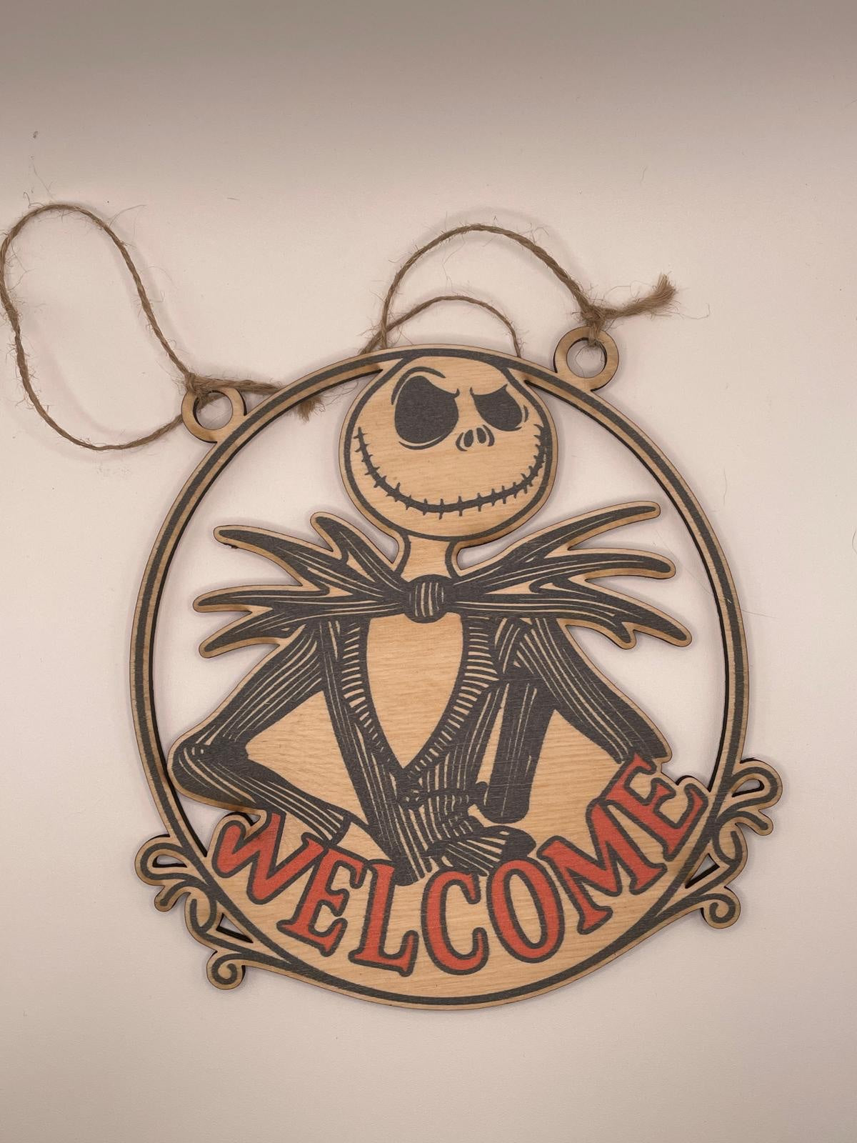 Dê um toque sombrio à sua entrada com nosso Sinal de Porta de Halloween "Welcome"!