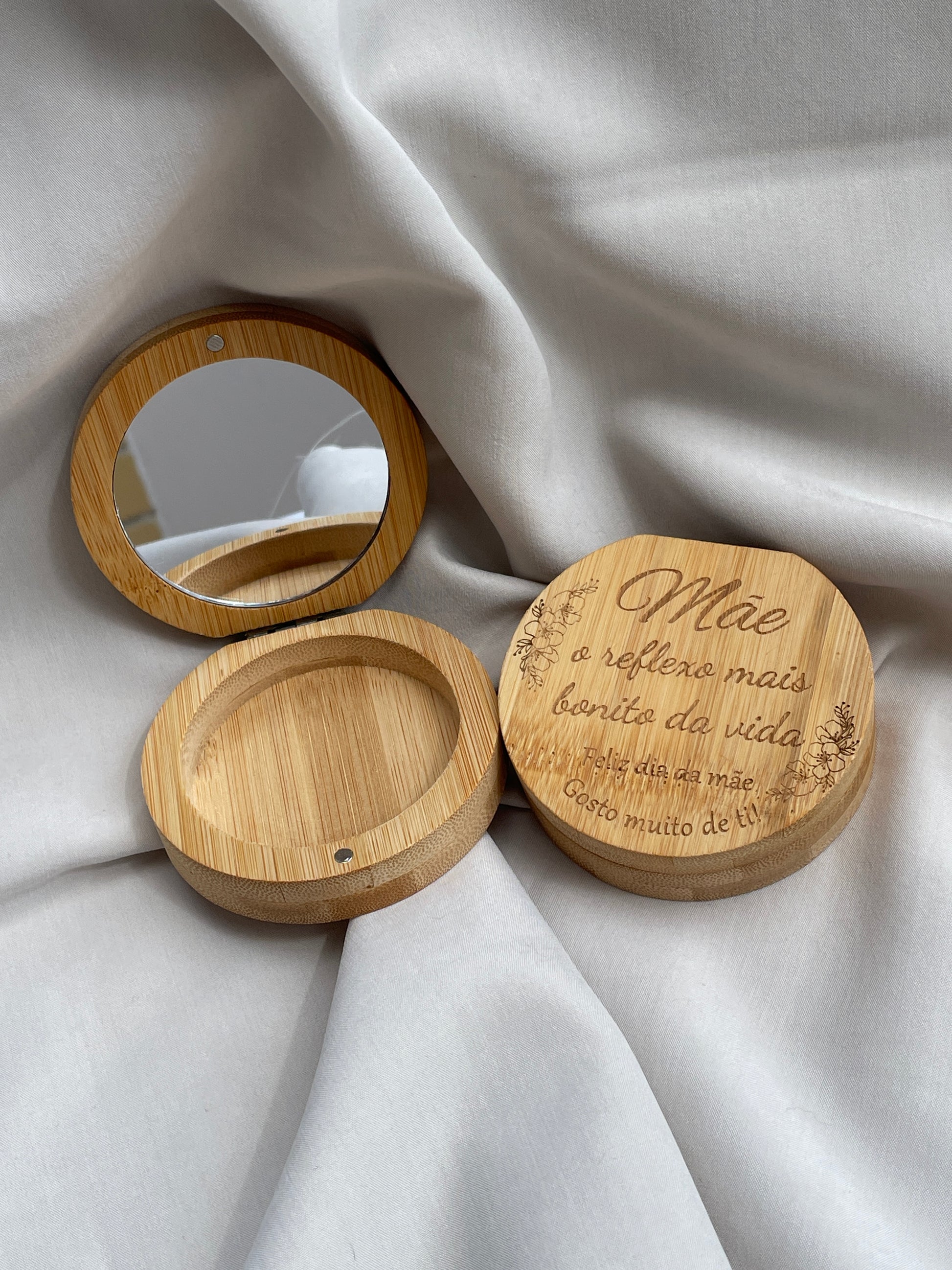 Porta-jóias com espelho com mensagem dia da mãe “Mãe, o reflexo mais bonito da vida”